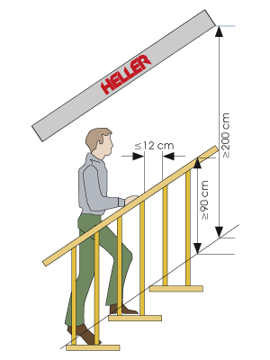 Die Durchgangshöhe von Stufenkante bis Decke muss mind. 2 m sein.